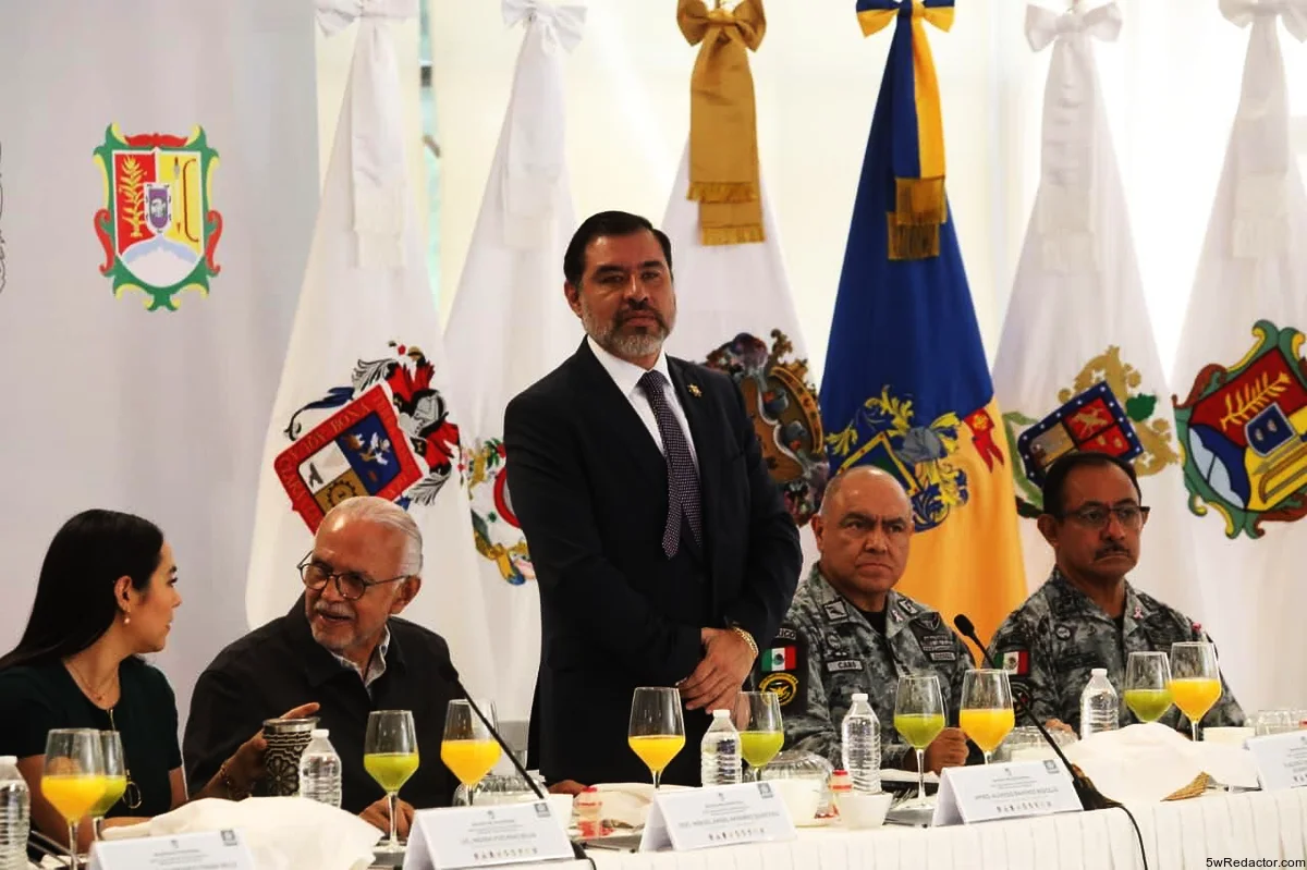 El encuentro reunió a gobernadores, autoridades municipales y mandos regionales de las Secretarías de Seguridad Pública, de la Defensa Nacional y de la Marina, así como a las Fiscalías Generales, con el objetivo de coordinar acciones operativas conjuntas y blindar las zonas limítrofes.