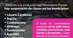 De ahí la invitación de la Coordinación Estatal de Protección Civil a las y a los michoacanos que habitan la zona costa de Michoacán, en zonas de riesgo y en las cercanías de cuerpos de agua a extremar precauciones y tomar las medidas recomendadas por las autoridades en la materia, a fin de evitar afectaciones a la salud, a la integridad física y al patrimonio familiar: