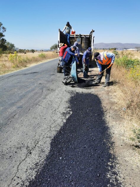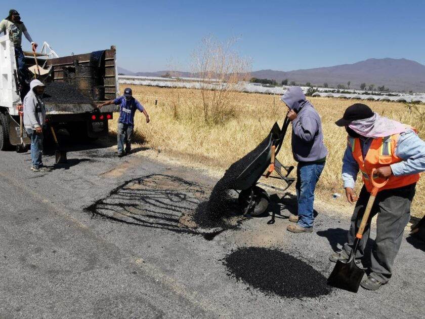 La cuadrilla de bacheo procedió a aplicar un promedio de 5 metros cúbicos de carpeta asfáltica en caliente y 150 litros de emulsión, para reparar los daños que presentaban los aproximadamente 2 kilómetros de la vialidad, derivado del constante paso de automotores pesados.