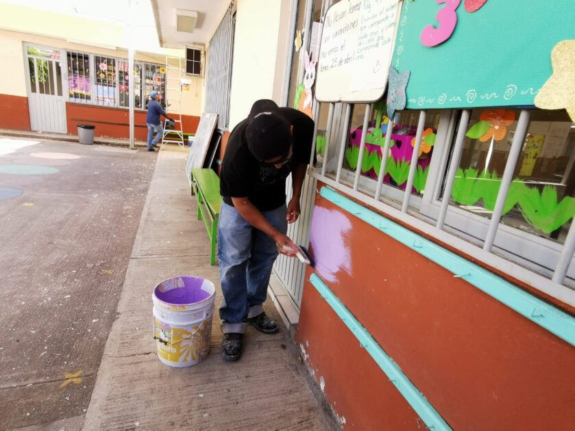 Al respecto, Arturo Mariscal Ochoa, director de Obras Públicas, detalló que, sumando esfuerzos con el plantel escolar, se procede al destecate, resane y aplicación de pintura en aulas y diversos sectores del kínder, que presentan deterioro a consecuencia de la humedad.