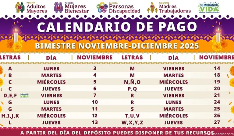 Pagos de Pensiones del Bienestar noviembre-diciembre 2025: Calendario oficial