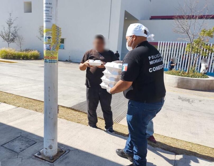 Con el compromiso de ayudar a la sociedad, oficiales de la Policía Michoacán, llevaron a cabo labores de proximidad destinadas a reforzar los vínculos de confianza entre el personal policial y la ciudadanía michoacana a través de la entrega de 100 porciones de alimentos a quienes esperan la recuperación de familiares enfermos; la acción se realizó en las inmediaciones del citado nosocomio.