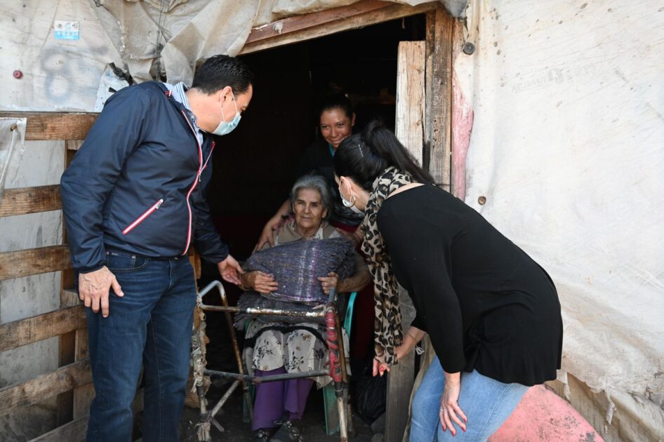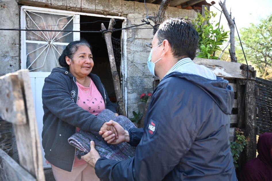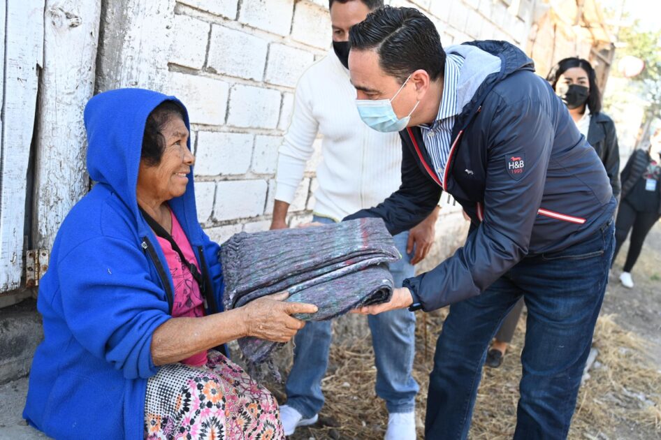 • El presidente Carlos Soto entregó cobijas en las viviendas de las colonias Francisco Sarabia y Ferrocarril