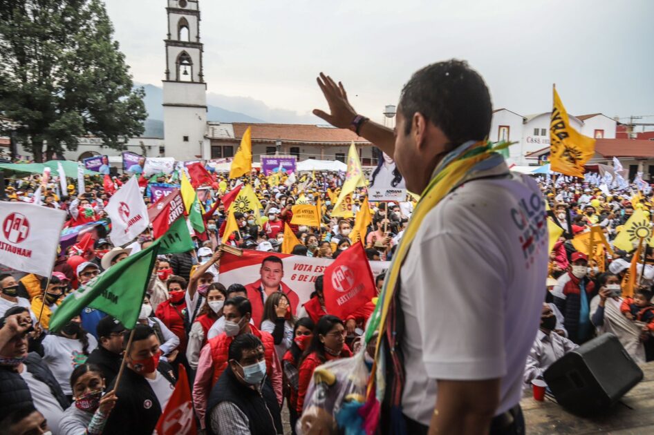 Pese al frío y bajo una tenue lluvia, Carlos Herrera se dirigió a las y los asistentes y a la y los candidatos a la presidencia municipal del PRI, PAN y PRD, Érica Reyes, Valdemar Barajas y Nicolás Zalapa, para estar del lado de la gente y a pesar de ser abanderados por distintos partidos, demostrar que la unión está antes que un color o una ideología política.