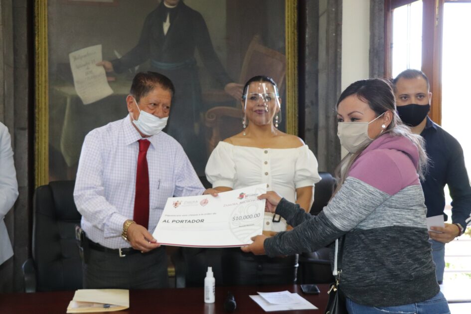 Zamora Michoacán a 05 de febrero del 2021.- Como parte del programa “Palabra de mujer”, se llevó a cabo la entrega de 13 créditos a madres jefas de familia para beneficiar la economía familiar de las Mujeres Emprendedoras. La Secretaria del Ayuntamiento, Lic. Belén Villagómez, entregó dichos recursos acompañada por el Director de Transversalidad del Programa Palabra de Mujer, Gaspar Guzmán, así como de Susana Gómez, representando al Enlace Macro regional del Programa Palabra De Mujer y Marlon Béjar, Analista de Crédito SÍ FINANCIA.