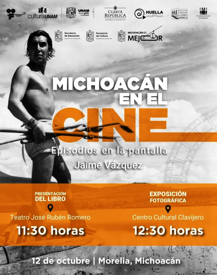 La Secretaría de Cultura de Michoacán (Secum) invita a la inauguración de la exposición “Michoacán en el cine. El orgullo de un legado”, una muestra integrada por fotografías de la Filmoteca de la UNAM, que se presentará el sábado 12 de octubre a las 12:30 horas en el Centro Cultural Clavijero, como parte del Festival Internacional de Cine de Morelia (FICM).