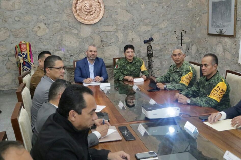 Acompañado por el secretario de Gobierno Carlos Torres Piña, por el secretario de Seguridad Pública José Alfredo Ortega Reyes, y César Osegueda, consejero jurídico del Gobierno del Estado, el gobernador manifestó su intención de fortalecer 13 mesas regionales de seguridad en el estado, y desde ahí establecer coordinación con los presidentes municipales en la estrategia de seguridad y prevención social de la delincuencia.