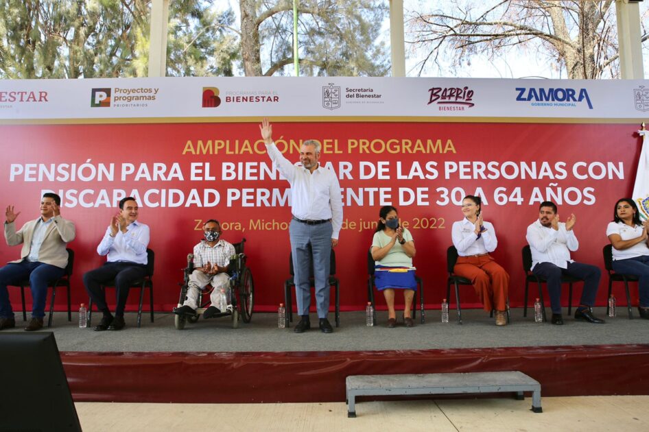 *Zamora, Michoacán, 6 de junio del 2022.-* Con una inversión bipartita por 140 millones de pesos, los gobiernos de México y de Michoacán arrancaron hoy el programa de Pensión para el Bienestar de las Personas con Discapacidad de 30 a 64 años de edad.