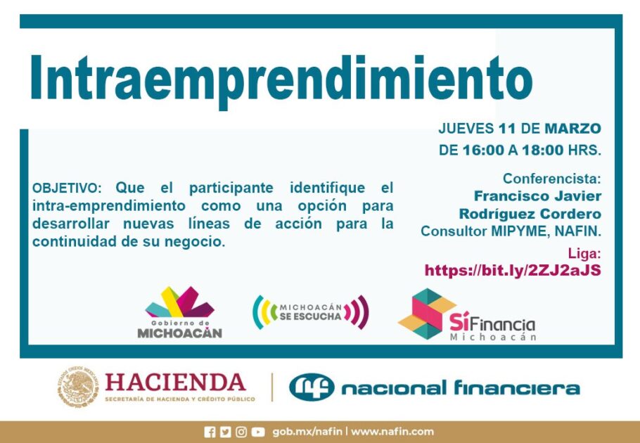 Morelia, Michoacán, a 3 de marzo de 2021.- El Gobierno del Estado de Michoacán, a través del Sistema Integral de Financiamiento para el Desarrollo de Michoacán (Si Financia) en coordinación con Nacional Financiera (Nafin), iniciará el año con cuatro cursos de capacitación empresarial.