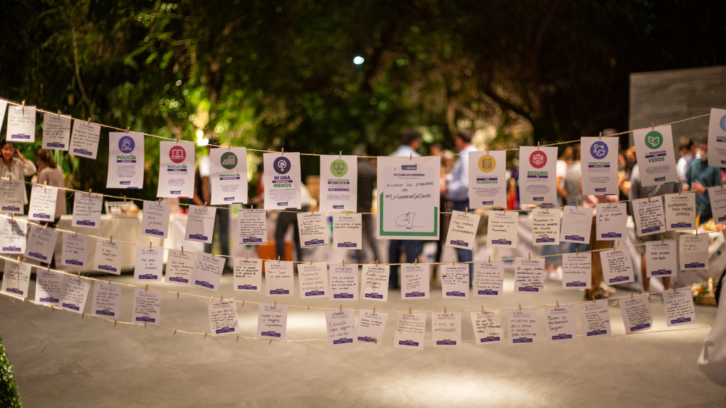En el lugar se encontraba un tendedero de propuestas estas por los jóvenes asistentes al evento, aquí, Herrera Tello, firmó su compromiso de escuchar y cumplir con la Generación Que Decide.
