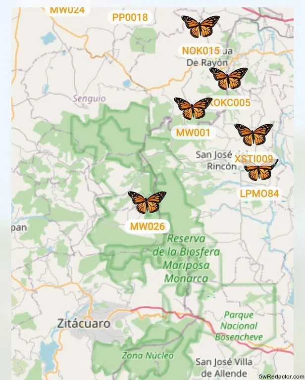 La Secretaría de Turismo de Michoacán (Sectur) anunció el 12 de noviembre de 2025 la llegada de la primera Mariposa Monarca con transmisor satelital, identificada como MW026, a la Reserva de la Biosfera Mariposa Monarca. Por lo tanto, este hito del Proyecto Colaboración Monarca marca un avance científico. Además, la mariposa, liberada el 27 de septiembre en Kansas, recorrió 4,000 km en 43 días. En consecuencia, los datos satelitales fortalecerán la conservación, beneficiando a los santuarios de El Rosario y Sierra Chincua.
