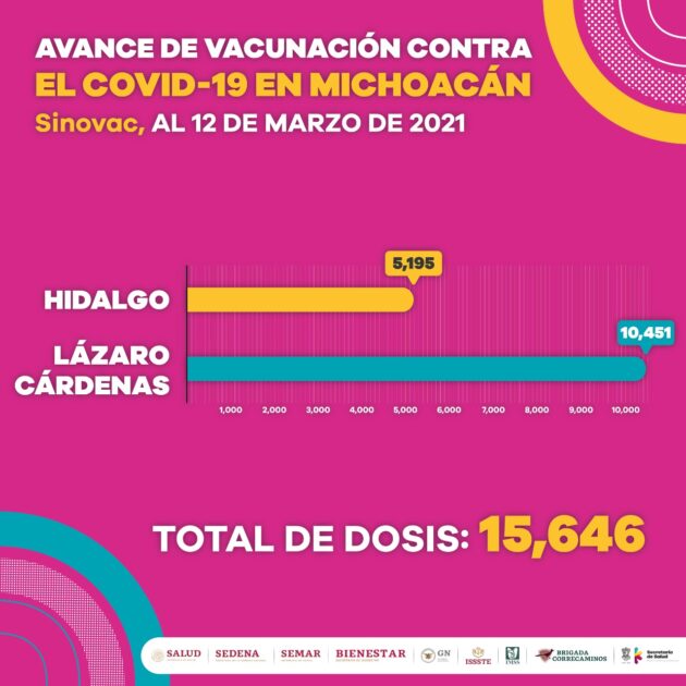 En el caso de Villamar, La Huacana, Tingambato, Buenavista, Tepalcatepec, Apatzingán, Parácuaro, Múgica, Angangueo, Coalcomán, Jacona y Áporo, la jornada de vacunación ya concluyó.