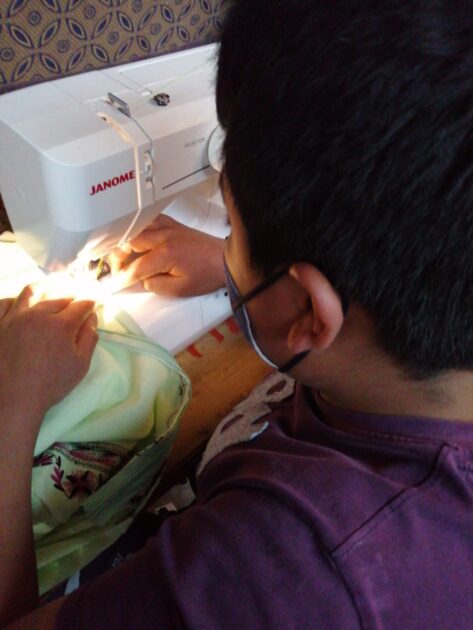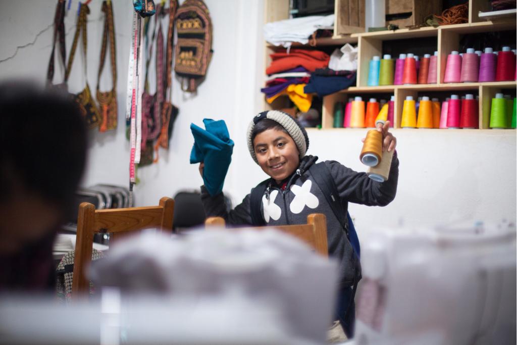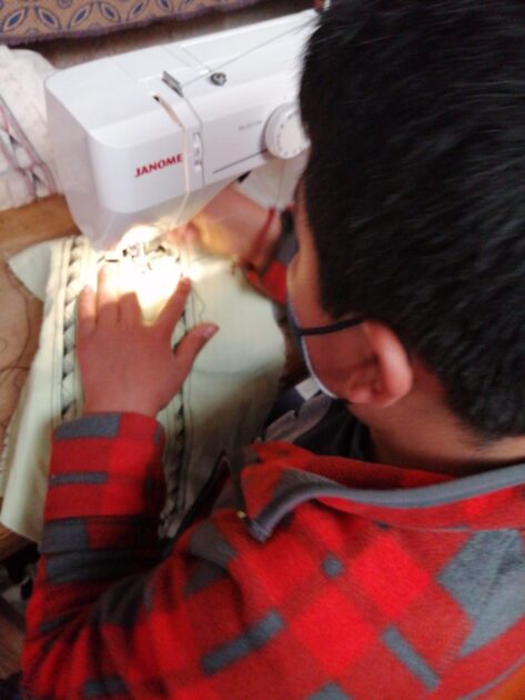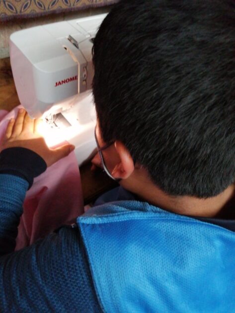 Durante su estancia en el Semillero creativo (los Semilleros creativos son grupos de enseñanza y creación artística gratuita para niñas, niños y jóvenes de todo el país, impulsados por la Secretaría de Cultura federal), Johni ha aprendido a hacer bolsas, vestidos, rebozos, lapiceras, carteras, mochilas y actualmente se encuentra realizando una camisa.