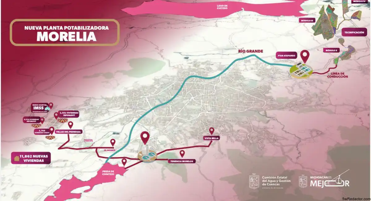 Asimismo, se proyecta una línea de conducción desde la presa de Cointzio hasta la planta y de esta a la zona oriente de la ciudad.