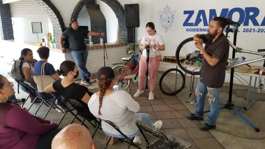 Zamora, Michoacán; a 9 de junio de 2022.- La Dirección de Movilidad organizó un “Taller Mecánico Básico para Ciclistas”, en el marco de la “Semana Nacional de la Bicicleta”, en el que se mostraron las fallas que más se presentan al utilizar este medio de transporte no contaminante.