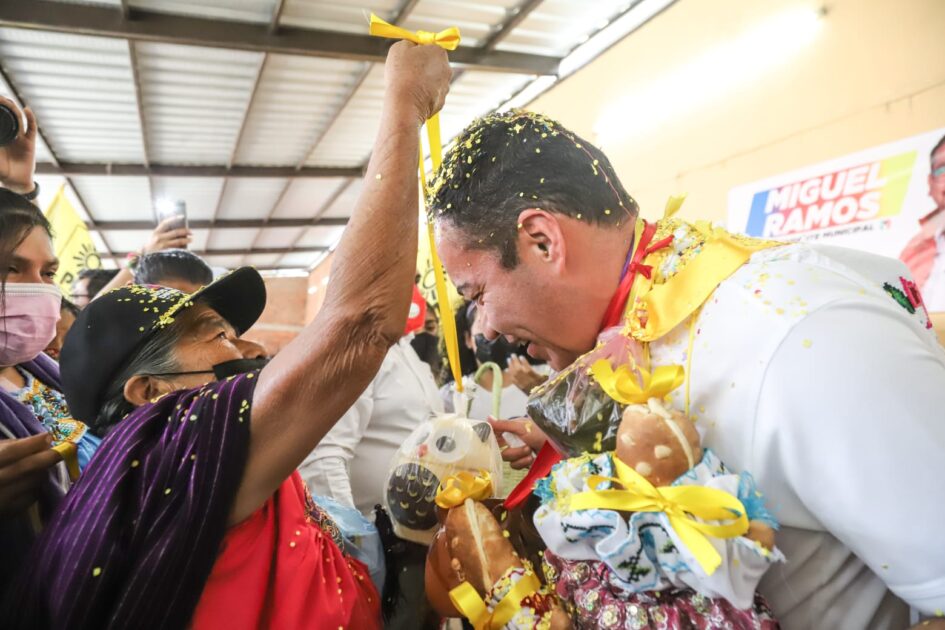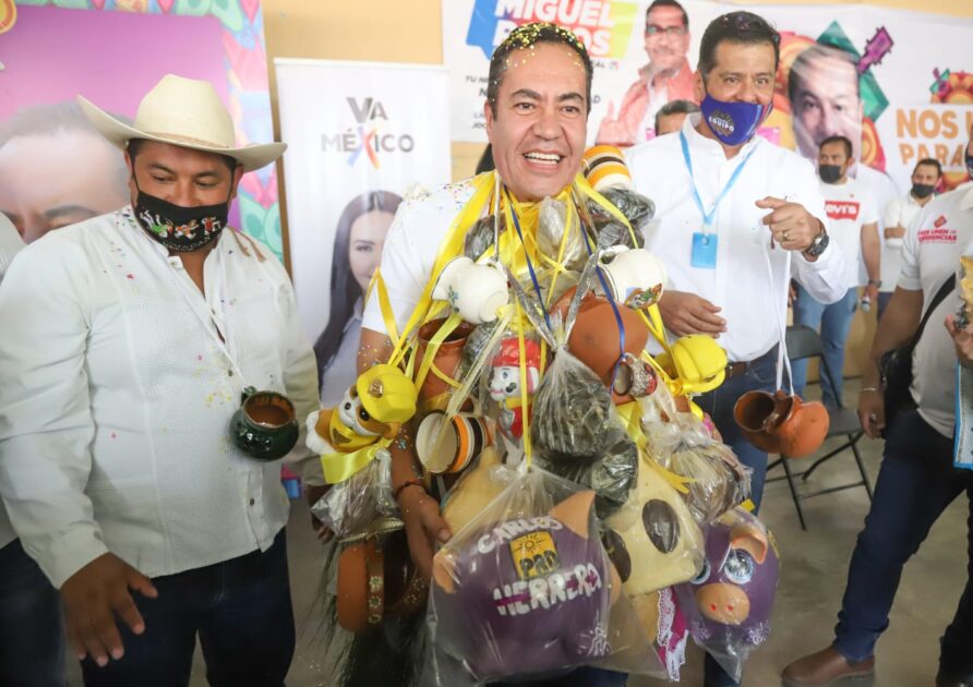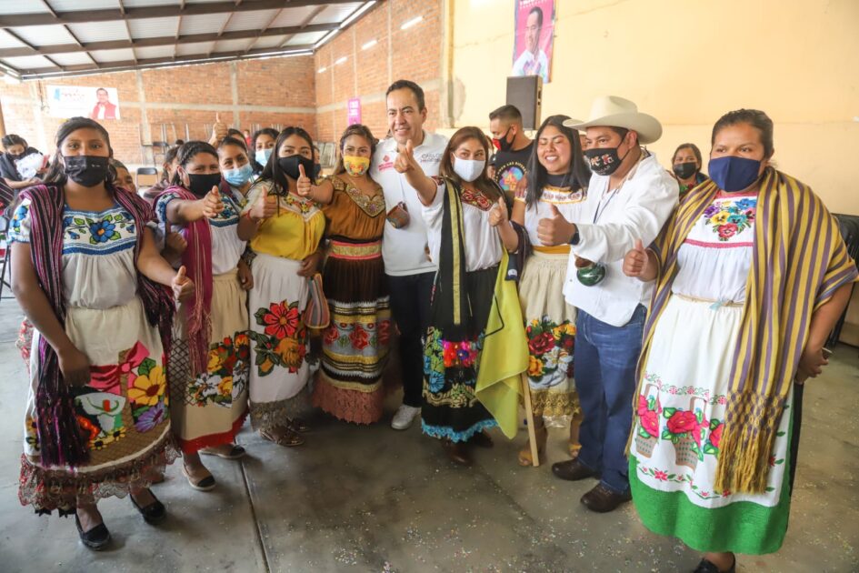 Chilchota, Michoacán a 23 de abril de 2021.- Bajo una atmósfera de fiesta y de rito ancestral, indígenas de la cañada de los Once Pueblos le colocaron vistosos adornos de cuelgas al candidato del Equipo por Michoacán, Carlos Herrera, quien externó palabras de gratitud con emoción y con un evidente peso encima.