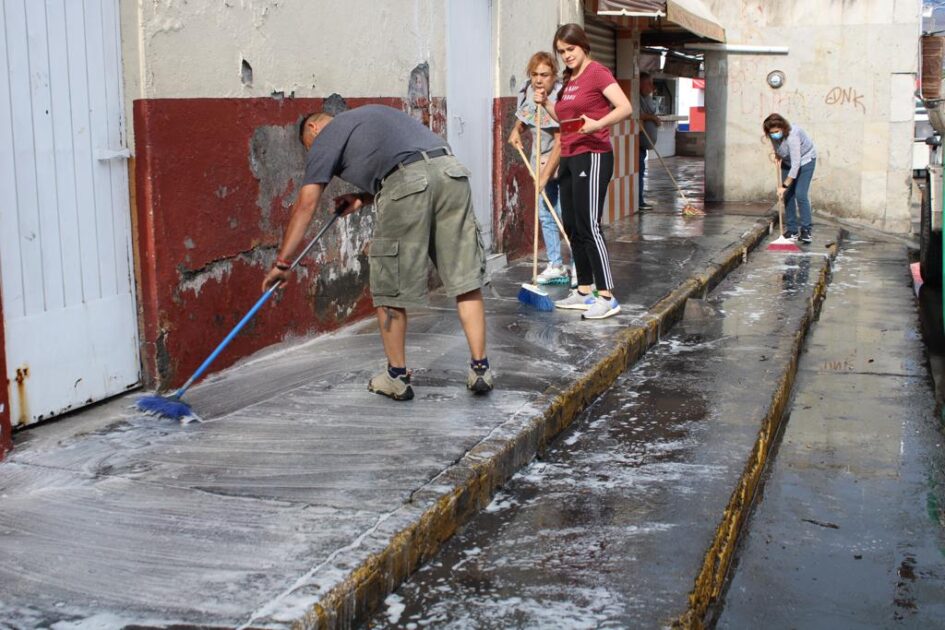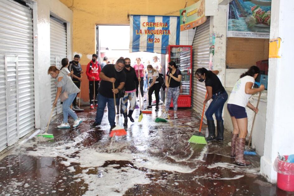 El oficial mayor, Juan Carlos Gutiérrez Chavolla informó que los trabajos consistieron en barrido y lavado del piso tanto en la plazoleta, como en el interior del mercado y las banquetas.