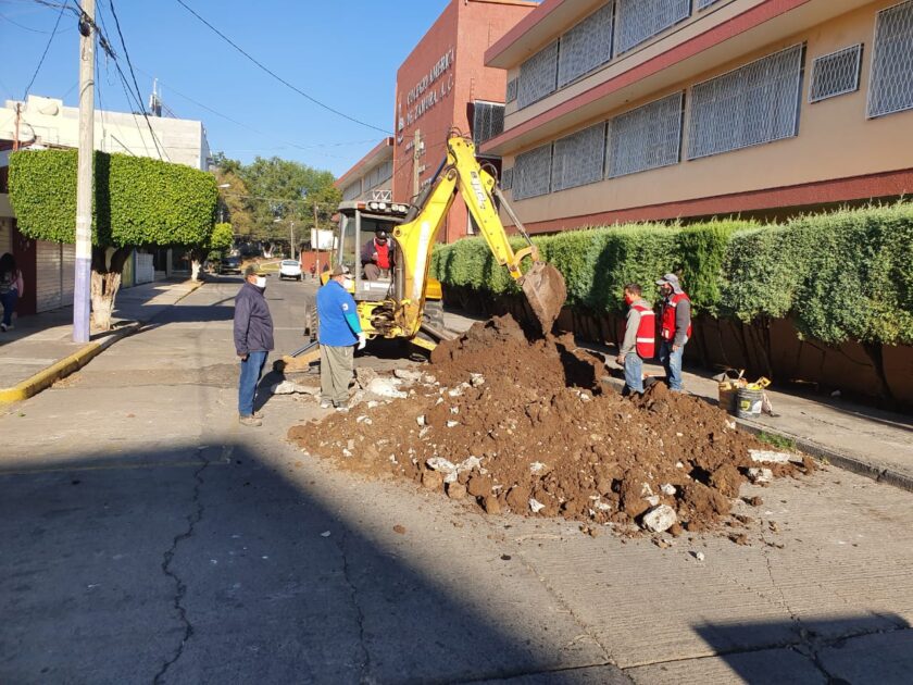 Zamora Mich.- Con el fin principal de evitar accidentes, personal del Sistema de Agua Potable y Alcantarillado de Zamora realizó los trabajos para reparar un socavón que fue reportado por vecinos sobre la calle Praga de la colonia La Luneta oriente, frente al colegio América.
